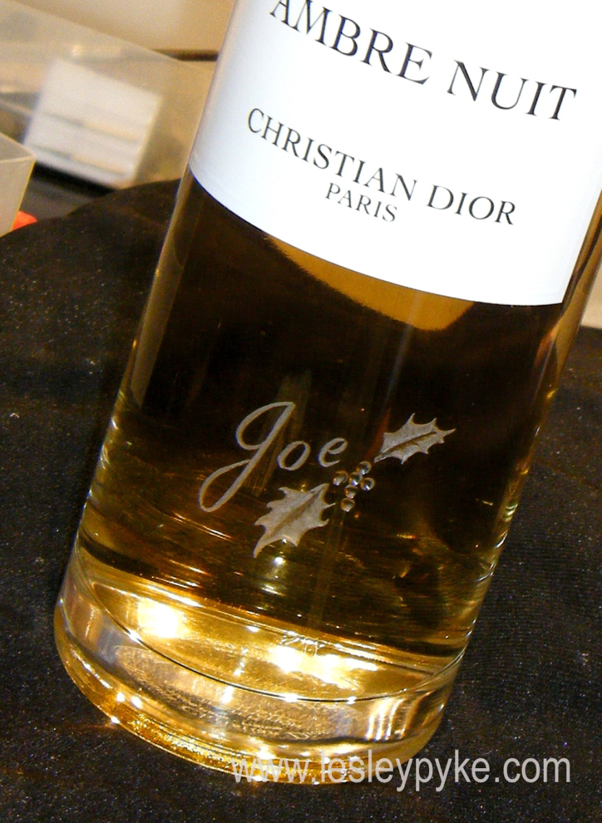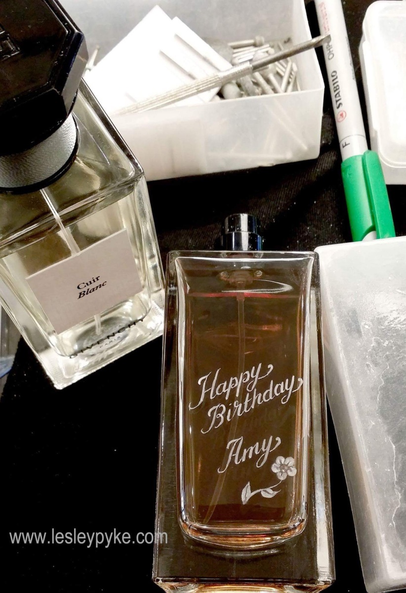 Engraving on bottles, perfumes and alchohol, in situ at various events over the years, here is a small selection of images. Often considered “Customer Theatre” !